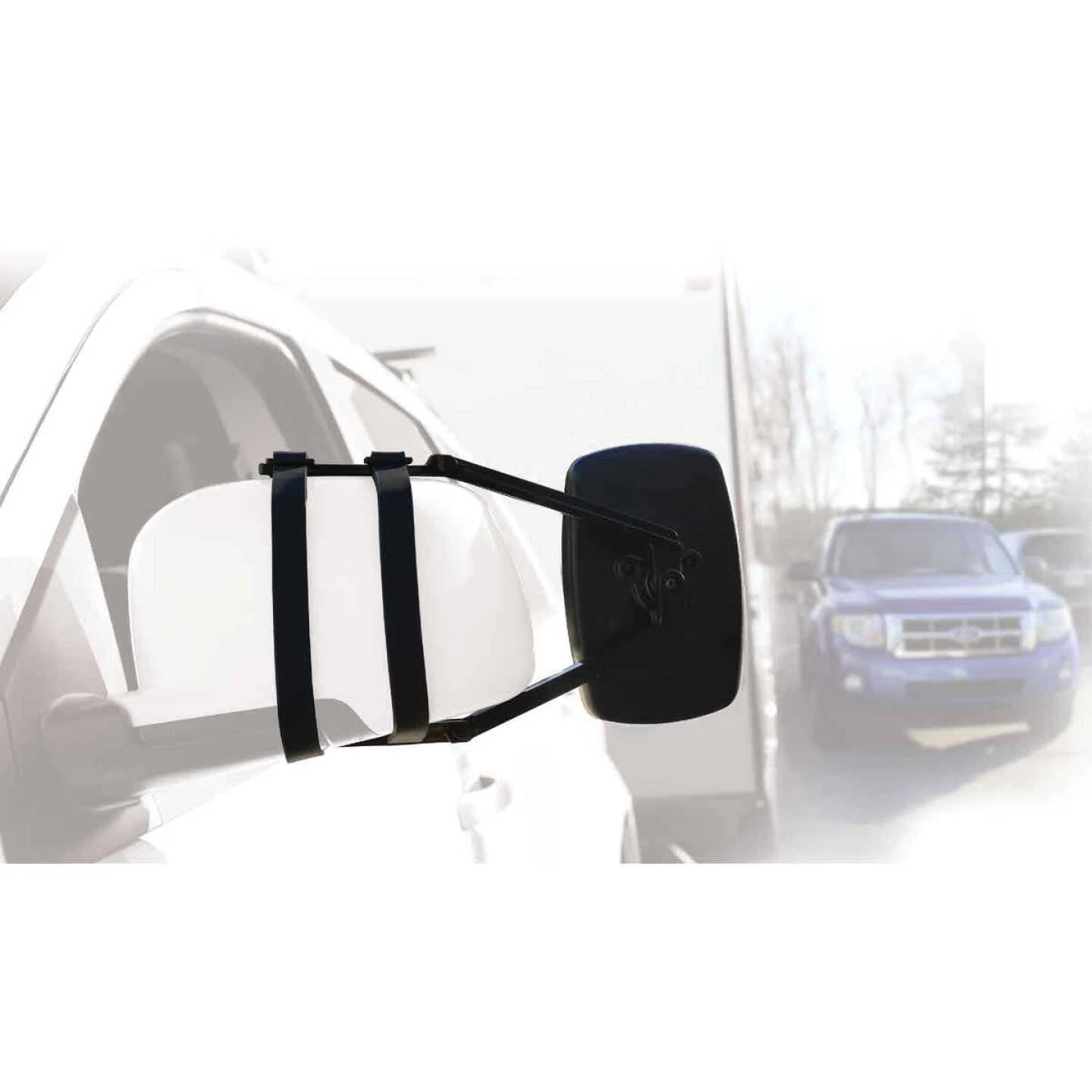 Clip-on tow mirror gives more visibility when towing, making driving while towing safer. Features 360 degree ball and socket adjustment and an aerodynamic design that reduces vibrations. No tools are required for installation. The adjustable rubber straps provide a universal fit. Fits driver or passenger side mirror.